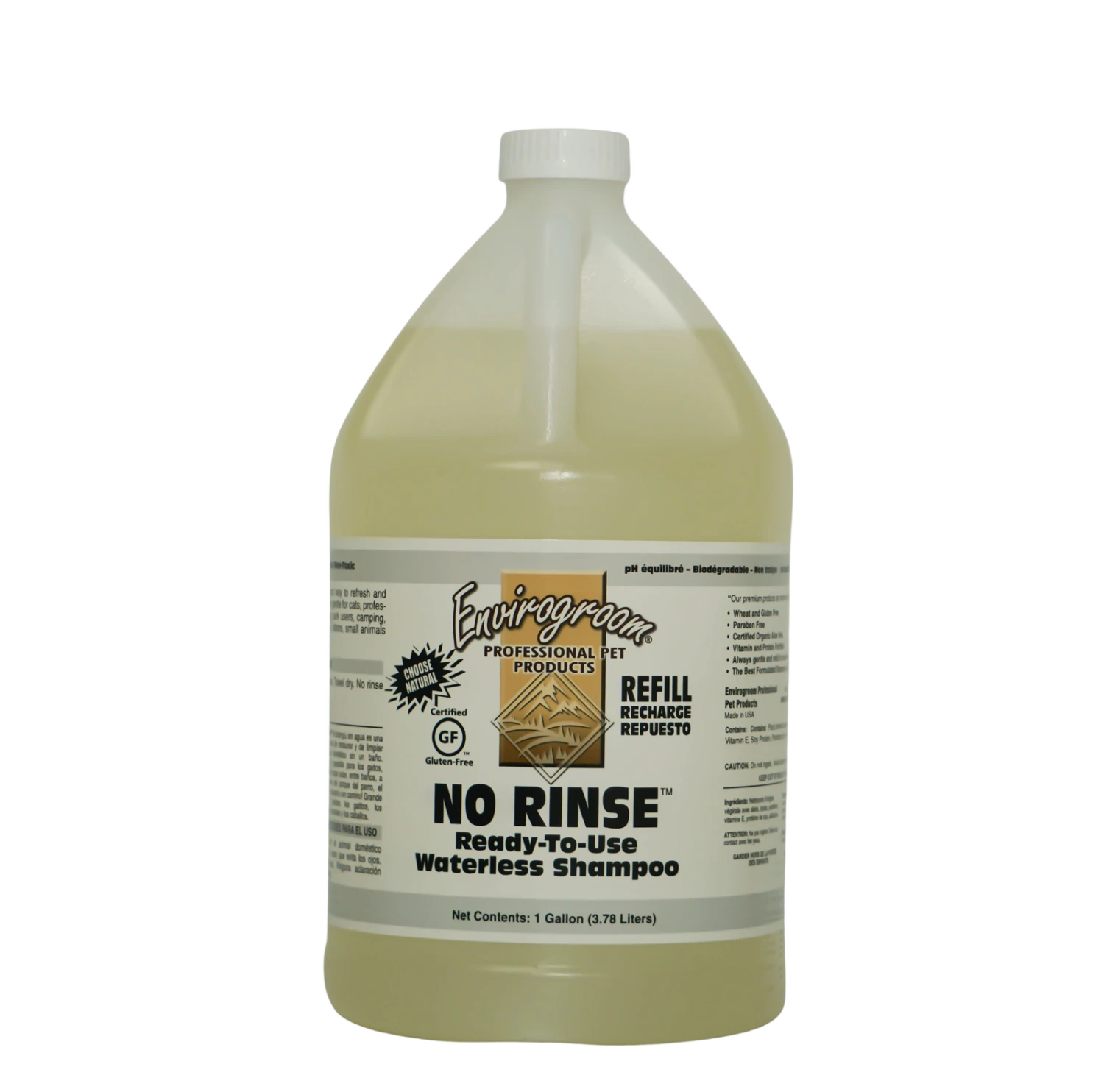 No Rinse Waterless Shampoo is a great way to refresh and clean your pet without a bath. Perfect and gentle for cats, professional touch ups, in between baths, dog park users, camping, traveling or on the go! Great for puppies, kittens, small animals and horses. Available in 16 oz. & 1 Gallon sizes