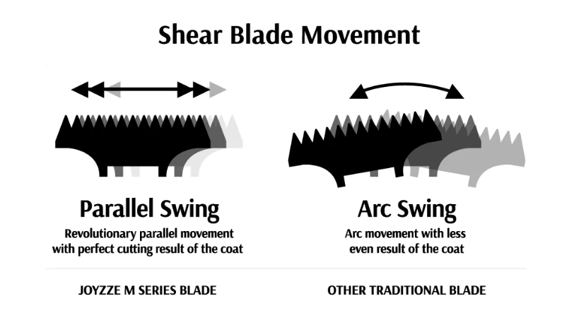 Joyzze Mini Trimmer uses Joyzze M Series blade which offers Parallel Swing Motion for perfect cutting result, instead of traditional Arc Swing Motion.