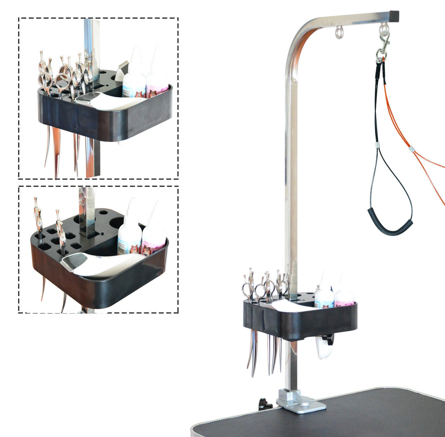- The new tool caddy mounts to the grooming arm post, it is height adjustable.
