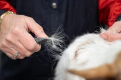 You will be able to pull any individual hair with precision and ease and this even in the most delicate areas. As a result, the new coat that grows back will have the original wire coat tecture, with its perfect deep and vivid colour Because the Show Tech Stripping stick is double Sided, it will cover you to handstrip every piece of the body. From detailed work like finishing, for example on the beard, eyebrows or ears, to larger parts of your wire-coated dog. Just like all other stripping tools, this stripping stick is also great in case the coat has previously been clipped or scissored and if you want to (re)create a natural-looking coat. Features a comfortable, lighweight, soft grip and anti-slip handle to reduce fatigue and prevent blisters or sore hands. With this great and precise stainless-steel tool, you won’t damage the dog’s coat.Â